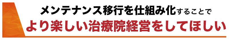 メンテナンス移行の仕組み化はこれからの治療院業界にとって必須だと思っています。