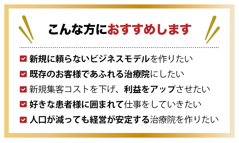 当院では、新規集客に頼らないでも売上が確保できる仕組みを以前より導入し、毎月安定しながら経営ができています。